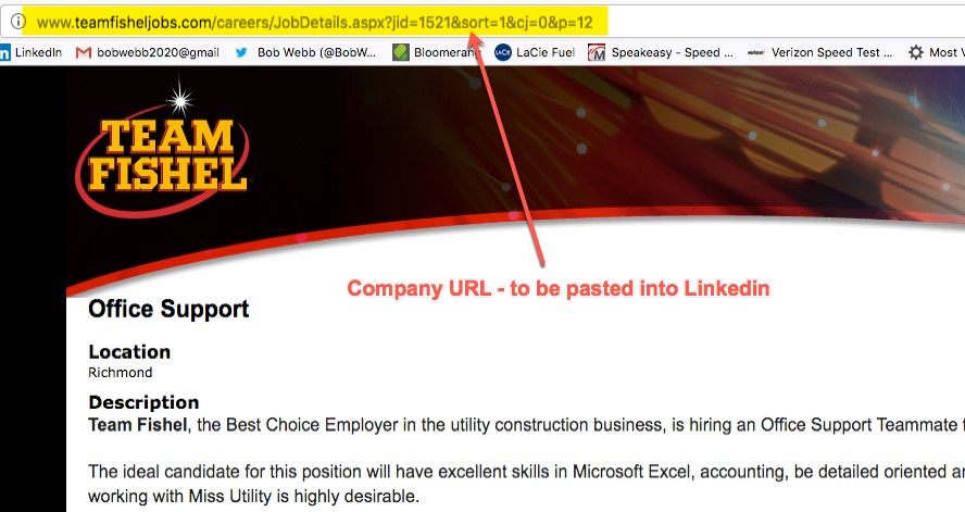 Summary: How to Post Jobs To Career Prospectors Linkedin Group - Three steps. A. Find a job on the Web, keep browser open so can copy its URL (company URL)B. Navigate to Career Prospectors Linkedin Group to "Share a Job" data entry fields C. Enter in Job Title & paste Company URL into Jobs tab Step by step: A. Find a job on the Web, keep browser open so can copy company URL into Linkedin