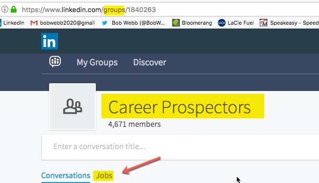 Summary: How to Post Jobs To Career Prospectors Linkedin Group - Three steps. A. Find a job on the Web, keep browser open so can copy its URL (company URL)B. Navigate to Career Prospectors Linkedin Group to "Share a Job" data entry fields C. Enter in Job Title & paste Company URL into Jobs tab Step by step: A. Find a job on the Web, keep browser open so can copy company URL into Linkedin